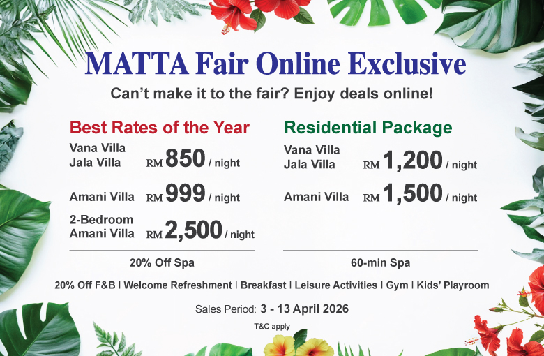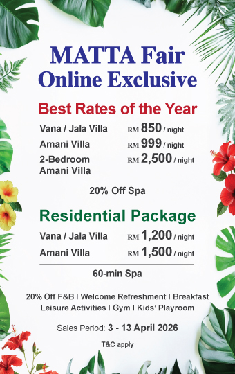 Experience an authentic, tranquil escape with our Mangala Experience Residential Package. Enjoy a relaxing 3-day, 2-night stay in your choice of Sara Villa, Vana Villa (without pool), or Amani Villa (with pool). Delight in RM300 Resort Credit to spend on food, beverages, and spa treatments.